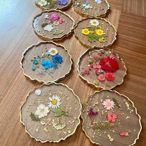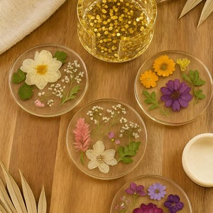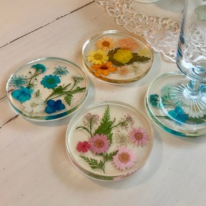 Handmade Resin Coaster Set: Real Pressed Flowers, Boho Decor